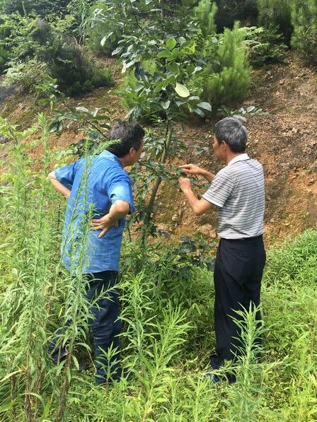 7月一个炎热的下午,在瑶琳镇大山村山核桃林地里,林农反映山核桃落果。森林医生仔细查看后认为是山核桃干腐病和不科学施肥是造成山核桃落果的主要原因,建议林农用喹啉酮对病斑进行及时防治并在3个时间点科学合理施肥。在瑶琳桃源村,周大伯种植的花梨木不同程度地遭受虫蛀为害。森林医生不顾酷暑,对山上的近千株花梨木依依进行调查。森林医生诊断后认为,这些苗木种植海拔较高,年初的极端低温冻伤了幼苗枝条并部分枯死,而后小蠹虫侵入为害,建议周大伯及时清理枯枝病枝并销毁。在横村华丰村,近500年树龄的樟树部分树皮脱落松动,森林医生及时开药方,建议去除松动树皮,铲除腐烂物,并用托布津进行喷施保护。